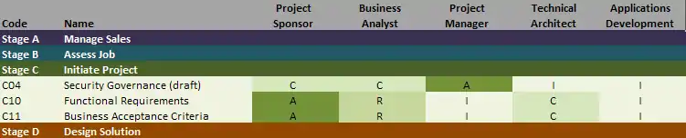 - این یک نسخهٔ توسعهیافته[6] از استاندارد RACI با دو نوع مشارکت اضافی است: