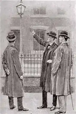 ![]() هولمز در حال اشاره به یک چراغ خیابان (اثر سیدنی پجت) | |