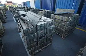![]() سلاحی که در زیر گونیهای پلی اتیلن پنهان شدهاست و به عنوان محموله «لباس غیرنظامی» در فرنکاپ توصیف شدهاست. | |