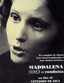 مادالنا، نمرهٔ اخلاق صفر (ایتالیایی: Maddalena, zero in condotta) فیلمی در ژانر کمدی-درام به کارگردانی ویتوریو دسیکا است که در سال ۱۹۴۰ منتشر شد. از بازیگران آن میتوان به کارلا دلپوجو، ویرا برگمان، جوزپه وارنی و ویتوریو دسیکا اشاره کرد.