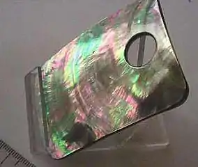 پوسته مادرمرواریدی کار شده برای یک شی تزئینی.