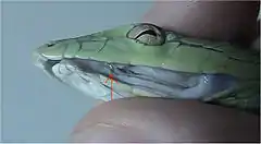 استخوان لامی، استخوانی کوچک است که در پشت و بخش زیرین جمجمه، در ناحیهٔ «گردن» قرار دارد و به عنوان اتصالی برای زبان مار عمل میکند، این پدیده در چهاراندامان نیز وجود دارد.