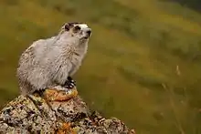 - مشارکتکنندگان ویکیپدیا. «Hoary marmot». در دانشنامهٔ ویکیپدیای انگلیسی، بازبینیشده در ۱۹ اکتبر ۲۰۱۵.