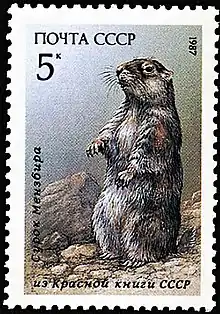 - مشارکتکنندگان ویکیپدیا. «Menzbier's marmot». در دانشنامهٔ ویکیپدیای انگلیسی، بازبینیشده در ۲۰ اکتبر ۲۰۱۵.