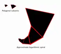 ![]() نیمتنه پوسته ناتیلوس (آبزی) که نمایش دهنده شکل حدودی اسپیرال لگاریتمی است. |