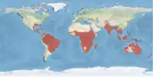| گستره پراکندگی گونههای مختلف مارگردن در جهان | |