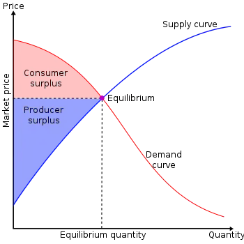 در جایی که Pmkt قیمت تعادلی است(که در آن عرضه برابر تقاضا)، Qmkt مقدار کل قیمت تعادلی خریداری شدهاست.