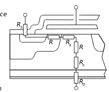 - Rch مقاومت کانال است. این مقاومت، نسبت معکوس با عرض کانال و همچنین در یک ویفر سیلیکون، با چگالی کانال دارد. مقاومت کانال، یکی از عوامل مهم در تعیین مقاومت حالت روشن ماسفتهای ولتاژ پایین است و تلاشهای فراوانی در جهت کوچکتر کردن ابعاد کانال به منظور افزایش چگالی آن، در حال انجام است.
