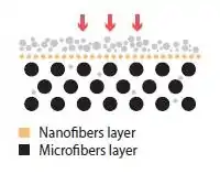 تفاوت در مکانیزم به داماندازی ماسکهای مبتنی بر نانوالیاف دلیل اصلی کارایی بهتر این ماسکها در حضور رطوبت و مایعات است. راندمان فیلتراسیون ماسکهای مبتنی بر نانوالیاف با استفادهٔ مصرفکننده در طول زمان به دلیل تشکیل یک لایه از ذرات به دام افتاده و تراکم بیشتر فیلتر، افزایش پیدا میکند. البته نه تا حدی که باعث کاهش تنفس پذیری فیلتر شود.[4]