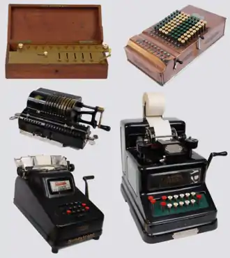 - مشارکتکنندگان ویکیپدیا. «Mechanical calculator». در دانشنامهٔ ویکیپدیای انگلیسی، بازبینیشده در ۲۲ نوامبر ۲۰۱۸.
