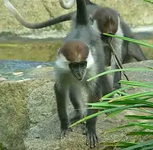 - مشارکتکنندگان ویکیپدیا. «Collared mangabey». در دانشنامهٔ ویکیپدیای انگلیسی، بازبینیشده در ۱۰ مه ۲۰۱۷.