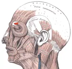 | پیوست | پوست پیشانی، نزدیک ابرو |