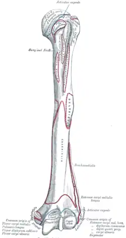 | ریشه | سطح قدامی استخوان بازو، بویژه نیمه انتهایی آن |