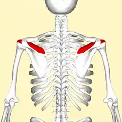 ![]() موقعیت ماهیچه سوپرااسپیناتوس (قرمز) که از نمای پشت دیده میشود. | |