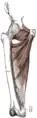 ![]() Structures passing behind the رباط کشاله ران (pectineus visible at bottom right.) | |