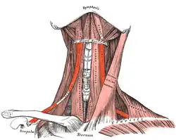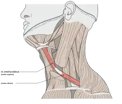 ![]() The omohyoid muscle, highlighted. | |