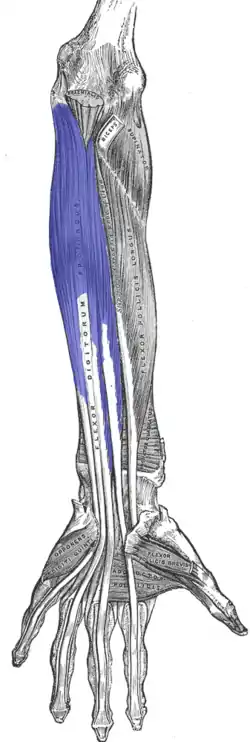 | ریشه | upper 3/4 of the anterior and medial surfaces of the body of the زند زیرین، interosseous membrane and deep fascia of the forearm |