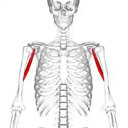 ![]() Position of coracobrachialis muscle (shown in red). | |