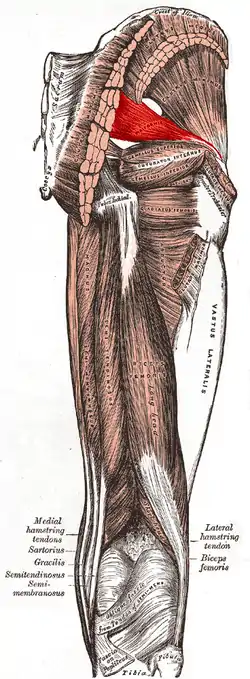 ![]() Muscles of the gluteal and posterior femoral regions, piriformis labeled | |