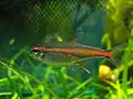 گونهای دلخواه برای آکواریوم است که ۴ سانتیمتر درازا دارد و ساکن آبهای جاری نزدیک ریودوژانیرو است. رنگ آن قرمز، همراه با سر و شکم نقرهای و دارای ۲ نواره تیره روی شانه است. تمام بالهها به جز بالههای سینهای قرمز هستند.[8]