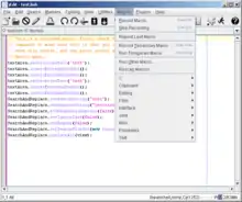 ویرایشگر متن برنامه نویسان دیگر، Vim (از نوادگان ششم)، نیز اجرای کامل ماکرو را دارد. این دستگاه میتواند در یک رجیستر (ماکرو) ثبت شود که چه کسی روی صفحه کلید قرار دارد و میتواند درست مانند VBA macros برای مایکروسافت تکرار یا ویرایش شود. Vim همچنین دارای یک زبان برنامهنویسی به نام Vimscript[5] برای ایجاد ماکروها است.