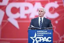 مایکل ریچارد مایک پنس (انگلیسی: Michael Richard Mike Pence؛ زادهٔ ۷ ژوئن ۱۹۵۹) وکیل، سیاستمدار و مدیر ارشد اجرایی آمریکایی است که از از سال ۲۰۱۷ تا ۲۰۲۱ تحت ریاستجمهوری دونالد ترامپ به عنوان چهل و هشتمین معاون رئیسجمهور ایالات متحده آمریکا فعالیت میکرد. او پیشتر از سال ۲۰۱۳ تا ۲۰۱۷ به عنوان ۵۰مین فرماندار ایندیانا مشغول به کار بود. پنس که به عنوان یکی از اعضای حزب جمهوریخواه در تاریخ ۱۴ ژانویهٔ ۲۰۱۳ میلادی به عنوان فرماندار شروع به کار کرد، پیشتر از سال ۲۰۰۱ تا ۲۰۱۳ حوزه انتخابیه ششم ایندیانا را در مجلس نمایندگان ایالات متحده آمریکا نمایندگی میکرد و از سال ۲۰۰۹ تا ۲۰۱۱ رئیس کنفرانس جمهوریخواهان مجلس نمایندگان آمریکا بود.[1] پنس محافظهکار و از هواداران دیرپای جنبش تی پارتی است.[2][3]