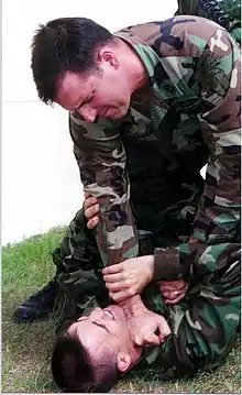 - در سال ۲۰۰۲، ارتش ایالات متحده برنامه آموزشی فنون درگیری مدرن ارتش ایالات متحده (MAC) را با انتشار کتابچه راهنمای ارتش ایالات متحده (FM 3-25.150) و ایجاد مدرسه فنون درگیری ارتش ایالات متحده در فورت بنینگ جورجیا راه اندازی کرد.[مبارزه تن به تن 5]