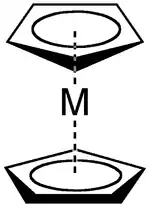 ساختار کلی یک متالوسن که در آن M نشان دهنده یک کاتیون فلزی است.