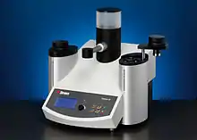 - نصب گرم (Hot Mount): از دستگاهی استفاده میشود که همزمان میتواند فشار و گرما تولید کند. نمونه به همراه پودری پلیمری داخل دستگاه قرار میگیرد و با ایجاد فشار و افزایش دما پودر مایع شده دور قطعه را میگیرد و با فشار ایجاد شده محکم میشود. تماس خوب و دقیق نمونه و پلیمر و ایجاد قالبی صاف و بدون تخلخل از ویژگیهای نصب گرم است.[3]