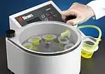 - نصب سرد (Cold mount): رزینهایی که استفاده میشوند ابتدا مایع هستند و پس از مدت اندکی سخت شده، به جامد تبدیل میگردند. این کار معمولاً با دستگاههایی که همزمان چندنمونه را نصب میکند انجام میشود بهصورتی که ابتدا قطعه در داخل قالب، روی صفحه صافی گذاشته میشود و از بالا رزین روی آن ریخته میشود. باکمی صبر و تحمل، پس از چند ساعت نمونه ما آماده است.