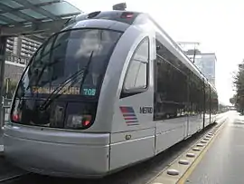 قطار شهری هیوستون در یک ایستگاه.