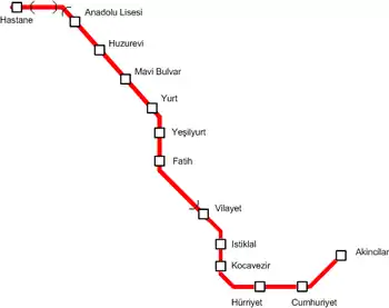 System map of Adana Metro.