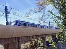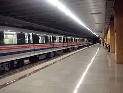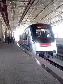 ![]() قطار مترو تبریز بر روی پل ویژه مترو، در حال حرکت به طرف ایستگاه استاد شهریار | |||