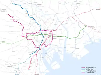 | ruby | خط اوادو | 大江戸線 | Hikarigaoka به Tochōmae via Tochōmae, Roppongi and Ryogoku | ۳۸ | ۴۰٫۷ کیلومتر | ۱۹۹۱ |