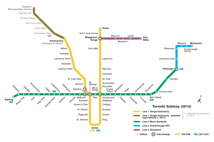 ![]() A map of the Toronto Subway/RT network. | |
