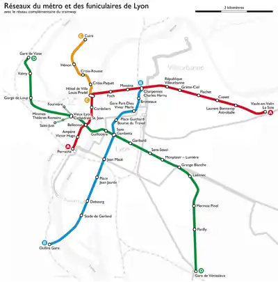 - Comprehensive map of the Lyon metro network (فرانسوی)