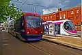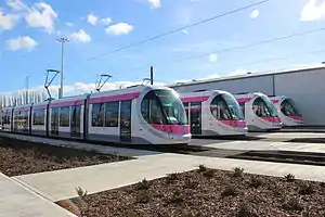 ![]() Urbos 3 trams at the Midland Metro depot in Wednesbury | |