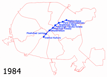 نقشه متروی مینسک از سال ۱۹۸۴ تاکنون
