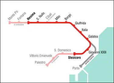 ![]() Catania Metro train at Porto Station. | |
