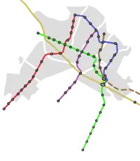| طول سیستم | ۴۳ کیلومتر (۲۷ مایل)(طول کل شبکه فعال) ۱۲۶٫۵ کیلومتر (۷۸٫۶ مایل) (طول کل شبکه بعد از اتمام احداث) | ||