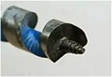 لبههای مته دارای تیغههای تیز (آبداده) جهت برش بافت چوب است و لبه تیغههای انتهای سوراخ را مسطح میکند. در این تصویر نمونه بدون مار پیچ را مشاهده میکنید که ناهمواریها را بر طرف میکند. مته میبایست در فواصل معین تراشهها را بیرون بریزد.