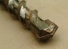 مته دارای لبههای از جنس کاربید تنگستن لحیم شده به یک بدنهای فولادی است. نوک آن از لغزشهای مته جلوگیری میکند.