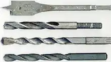 - کاربید تنگستن: کاربید تنگستن کاربیدهای و دیگر مواد بسیار سخت است که میتواند در تقریباً تمام مواد قطعه کار دریل در حالی که نگه داشتن لبه بیش از بیتهای دیگر. با توجه به هزینه بالا و تردی خود، آنها اغلب فقط در tipped ابزار، که در آن قطعات کوچک screwed brazed یا بر روی نوک بیت. با این حال، آن است که تبدیل شدن به رایج در مغازهها کار برای استفاده از مته کاربید سخت، و در صنایع خاص، به ویژه مته PCD، آن را امری عادی است برای برخی از زمان بودهاست.