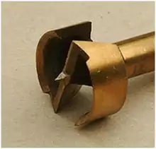 تیغه مته (الماس) دارای نوک مرکزی است که در مدت تراش کمک میکند تا مته منحرف نشود. تراش دهنده پیرامون بافت چوب لبهها و قطر داخلی را برش میدهد همچنین کمک میکند که چوب با دقت و بدون انحراف تراشیده (یا سوراخ) شود. عکسهای نمایشدادهشده دارای دو لبهٔ تراش در بالای لولهٔ استوانهایاند. این نوع مته بسیار سریع عمل میکند، ولی سوراخهای نامسطح و دارای ناهمواریهای بسیار از خود جا میگذارند.