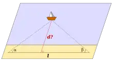 اکنون فاصله RC را میتوانیم با استفاده از سینوس زاویه آلفا یا سینوس زاویه بتا محاسبه کنیم: