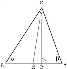 همچنین برای محاسبه فاصله نقطه مورد نظر از نقطه میانی دو نقطه معلوم، میتوانیم با استفاده از قضیه فیثاغورس و قانون کسینوسها نتیجه بگیریم: