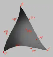 یک مثلث بزیر مکعبی سطحی با معادله زیر است: