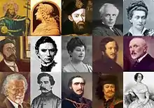 ![]() از راست بالا: ویلما هوگُننائی، بلا بارتوک، گابور بِتلِن، ماتیاش یکم و ایشتوان یکم وسط: اُتووش لوراند، اُتووش یوژف، اِما اُرتسی، یانوش بویایی و تیوادار چنتواری پائین: رُزا لابورفالوی، فِرِنتس راکوتسی، ایشتوان سِچِنْیی، یانوش آرانی و زُلتان کُدای | |