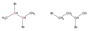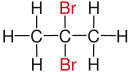| استخلافها بر روی یک دیبروموآلکان به رنگ قرمز نمایش داده شده است. | ||||