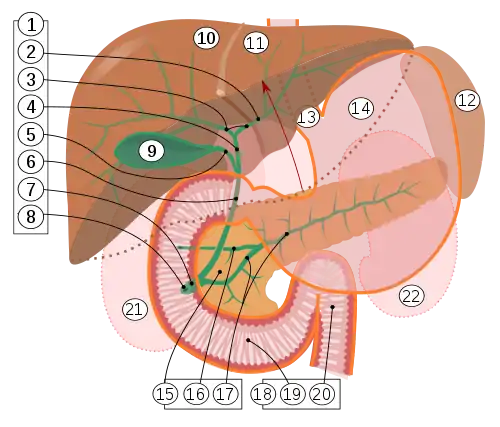 ![]() نمودار دستگاه گوارش و مجرای صفراوی | |
